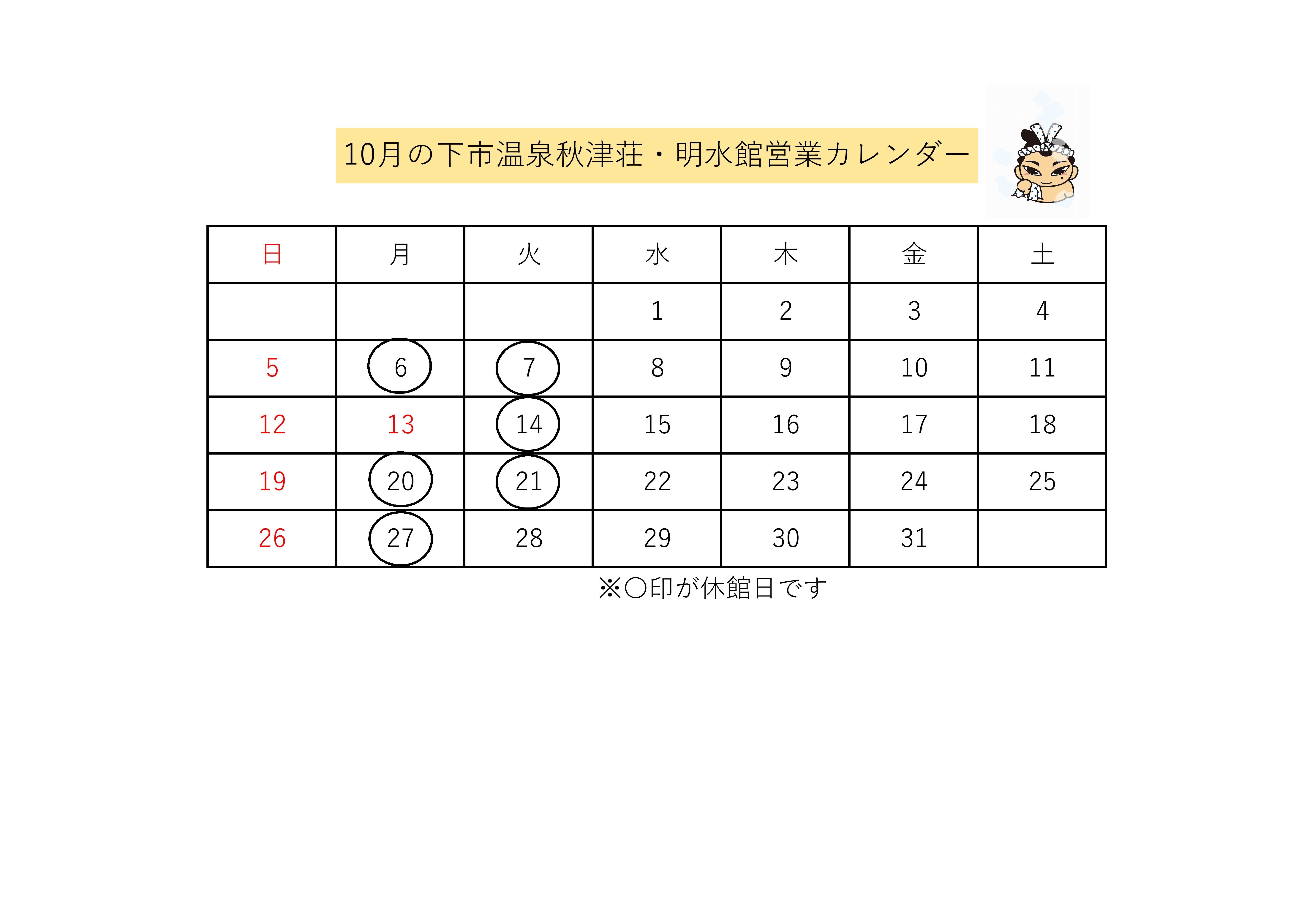 開館 午前11時から午後7時まで(入浴最終受付 午後6時30分)