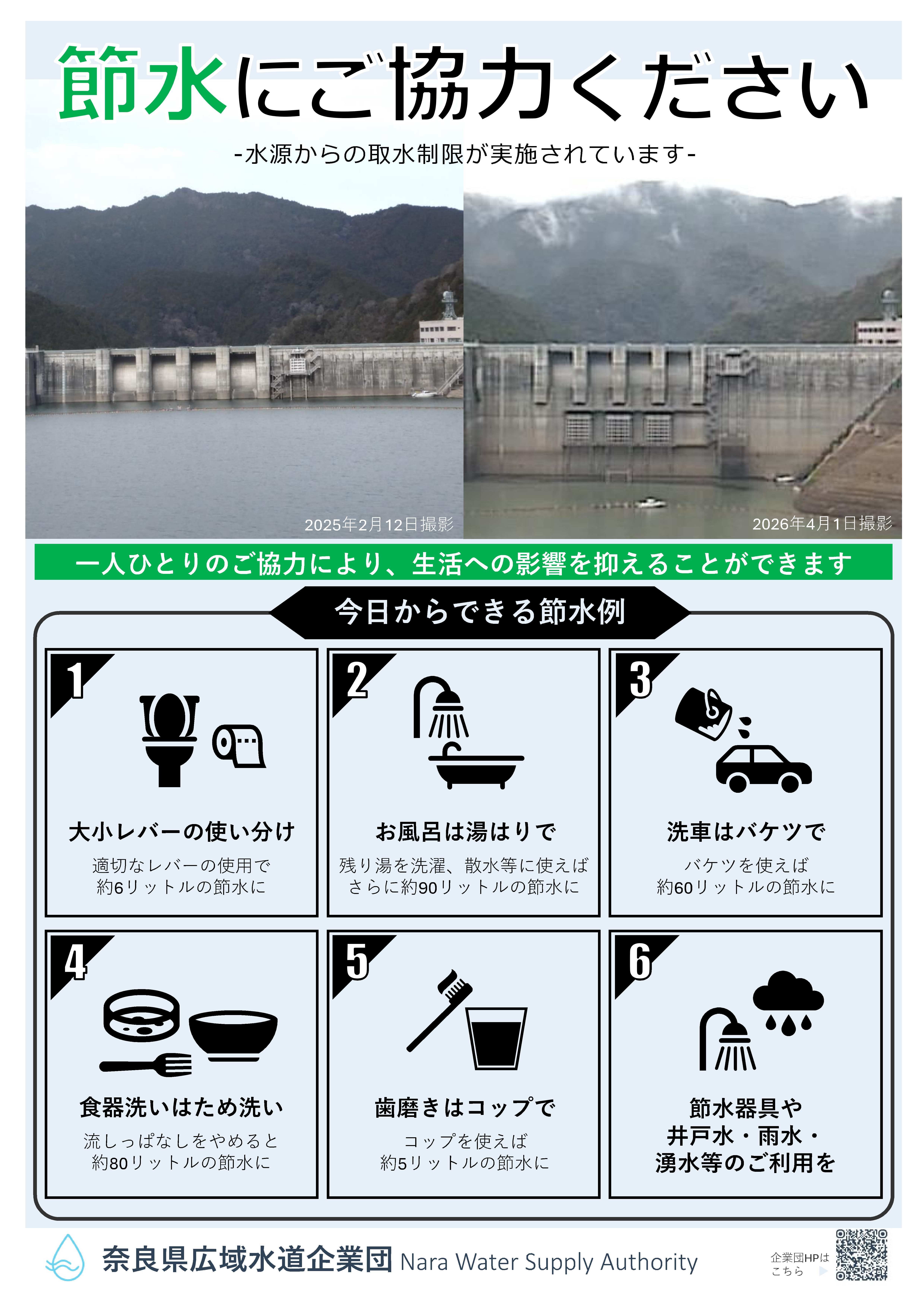 下市町内にお住まいの皆さん【下市町内の事業者の皆さん】におかれましては、節水にご協力をお願いいたします。