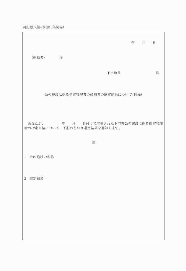 ○下市町公の施設に係る指定管理者の指定手続等に関する条例施行規則