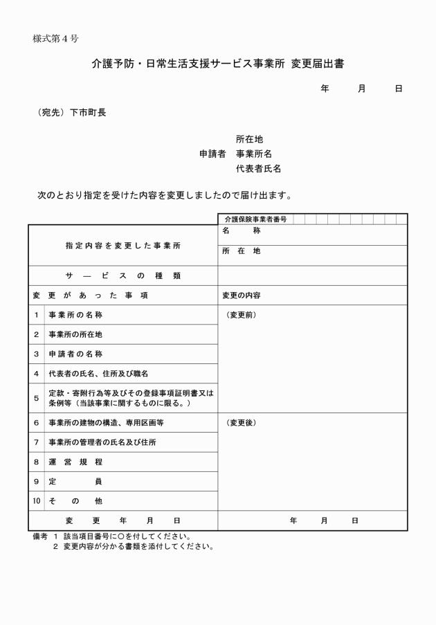 第5条 介護予防・日常生活支援サービス事業所の指定の申請は、指定申請書(様式第1号)により行うものとする。