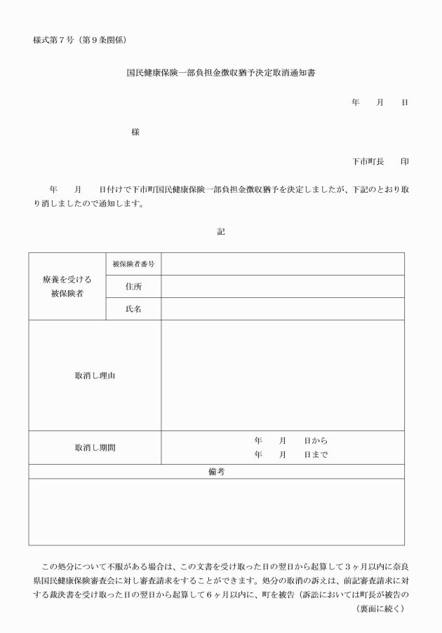 ○下市町国民健康保険一部負担金の減免及び徴収猶予に関する取扱要綱